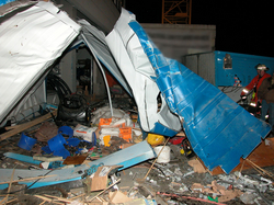 Selbst in weiterer Umgebung waren Schäden zu beklagen - das Gebäude des gemeindlichen Bauhofes wurde durch umherfliegende Teile ebenfalls beschädigt und auch hier gingen etliche Fensterscheiben zu Bruch. Die Feuerwehr Gräfelfing war mit 33 Einsatzkräften bis ca. 2 Uhr mit Aufräumarbeiten beschäftigt.