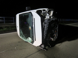 Gegen 04:21 wurden wir in den frühen Morgenstunden, des 30. Spetember 2018 unter dem Stichwort "Verkehrsunfall - Person eingeklemmt" alarmiert. Auf der A96 Richtung Lindau war ein Transporter ins Schleudern geraten und umgestürzt. Der leichtverletzte Fahrer konnte sich selbst aus dem Fahrzeug befreien und vom Rettungsdienst versorgt werden. Seitens der Feuerwehr wurde die Unfallstelle weiträumig abgesichert, ausgeleuchtet und der Brandschutz sichergestellt. Zum Aufstellen des Fahrzeugs sowie Reinigen der Fahrspuren wurde zeitweise die Autobahn komplett gesperrt. Der genaue Unfallhergang ist derzeitiger Gegenstand der polizeilichen Ermittlungen. Nach dem Abtransport des Unfallfahrzeugs konnte die Einsatzstelle an die Autobahnmeisterei übergeben werden und die 16 Kameraden gegen 06:30 Uhr wieder in das Gerätehaus einrücken.