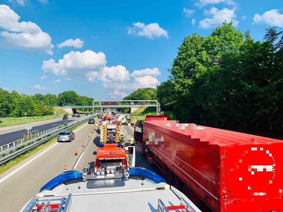 Am Dienstag kam es auf der A96 Richtung München zu einem Verkehrsunfall. Wir waren mit 27 Einsatzkräften im Einsatz und wurden mit der Berufsfeuerwehr zusammen alarmiert. 2 Verletzte kamen ins Krankenhaus. Im Stau kam es zu einem Auffahrunfall, auch dabei halfen wir.
