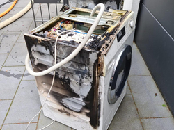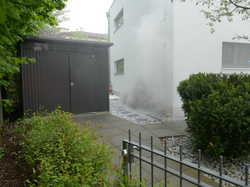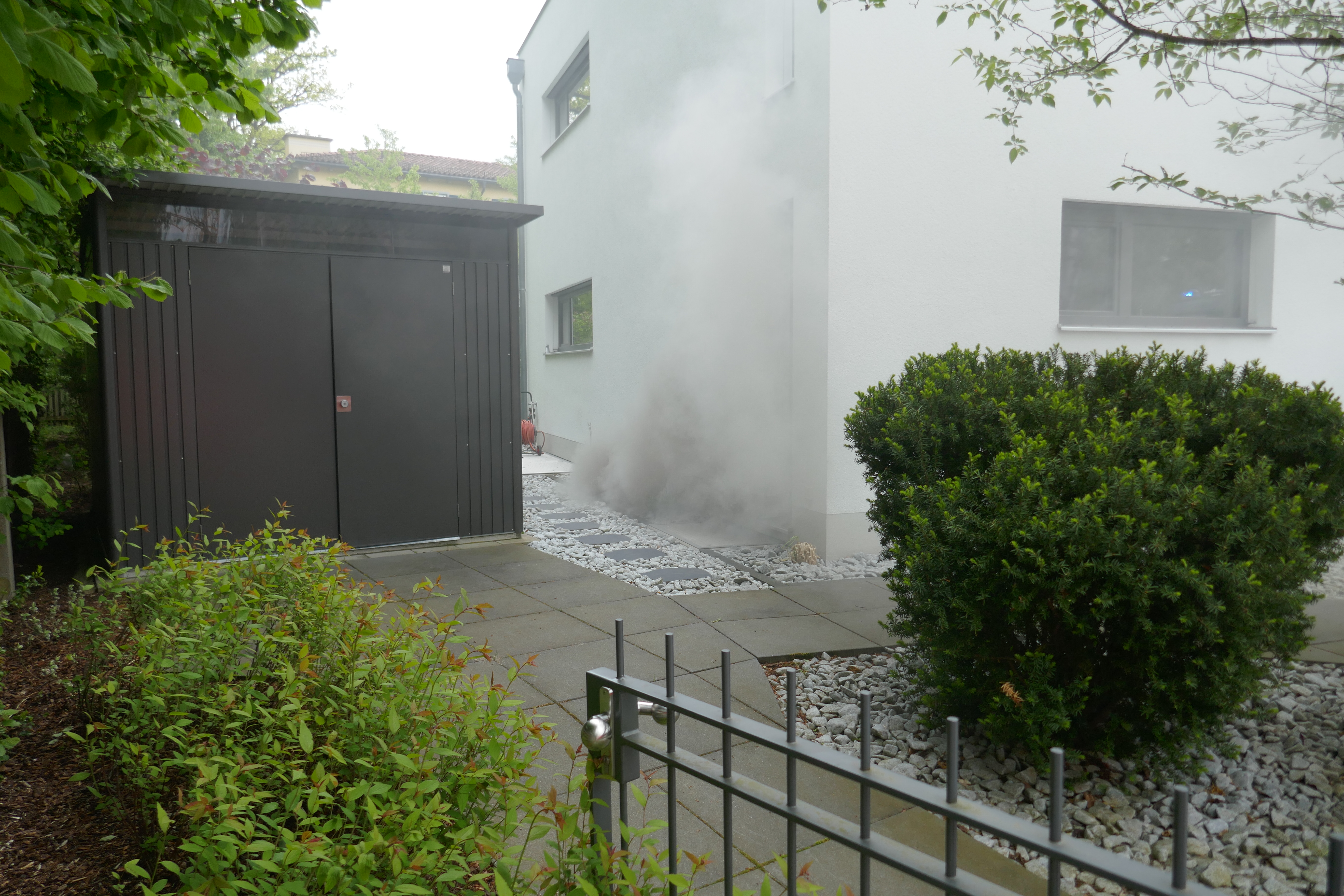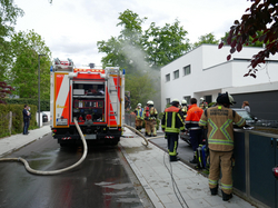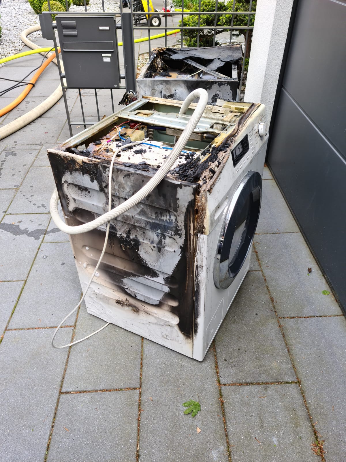 Das vorbildiche Verhalten der Hausbewohner bei einem Kellerbrand in einem Einfamilienhaus in der Mozartstraße trug maßgeblich dazu bei, dass der Schaden in Grenzen gehalten werden konnte. Als eine Bewohnerin am Nachmittag die Wäsche in ihrem Trockner im Kellergeschoss trocknete, bemerkte sie kurz nach dem Einschalten des Gerätes einen immer stärker werdenden Brandgeruch. Als sie auf der Suche nach der Ursache dann feststellen musste, dass aus dem Trockner bereits Flammen schlugen, schloß sie geistesgegenwärtig die Türe des betroffenen Raumes, rief die Feuerwehr und brachte sich und einen weiteren Bewohner in Sicherheit. Wir trafen bereits wenige Minuten nach dem Alarm an der Einsatzstelle ein und leiteten umgehend einen Löschangriff ein. Die Flammen hatten mittlerweile vom Trockner auch auf die danebenstehende Waschmaschine und weiteres benachbartes Inventar im Raum übergegriffen. Mit einem C-Rohr konnte der Brand durch einen Atemschutztrupp schnell abgelöscht werden. Zusätzlich wurde das Gebäude durch uns belüftet. Durch das umsichtige Verhalten der Bewohner konnten sich weder Feuer noch Rauch ungehindert im Gebäude ausbreiten -der Schaden beschränkt sich daher überwiegend auf den betroffenen Kellerraum. Das Gebäude beibt weiterhin bewohnbar.