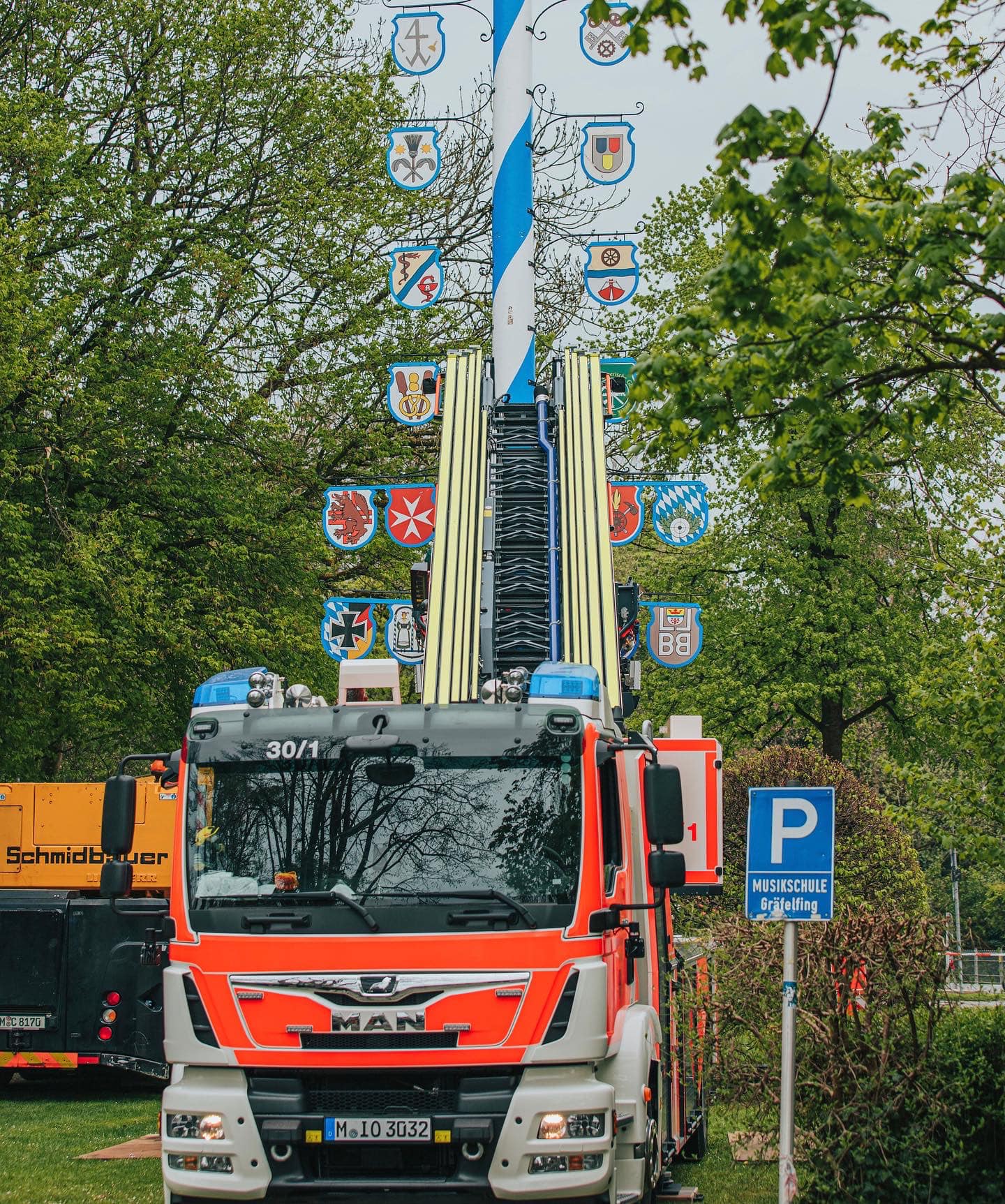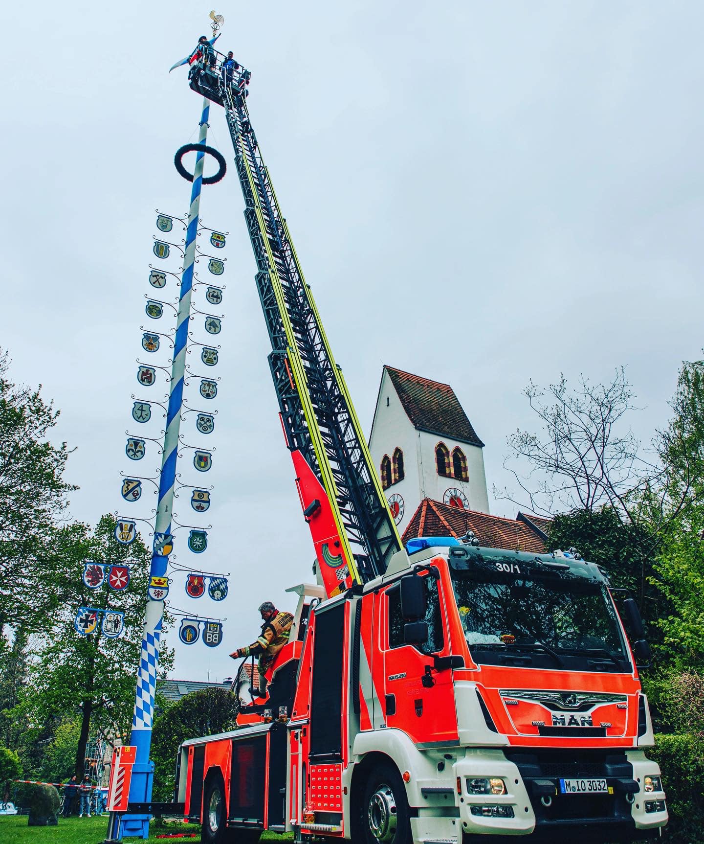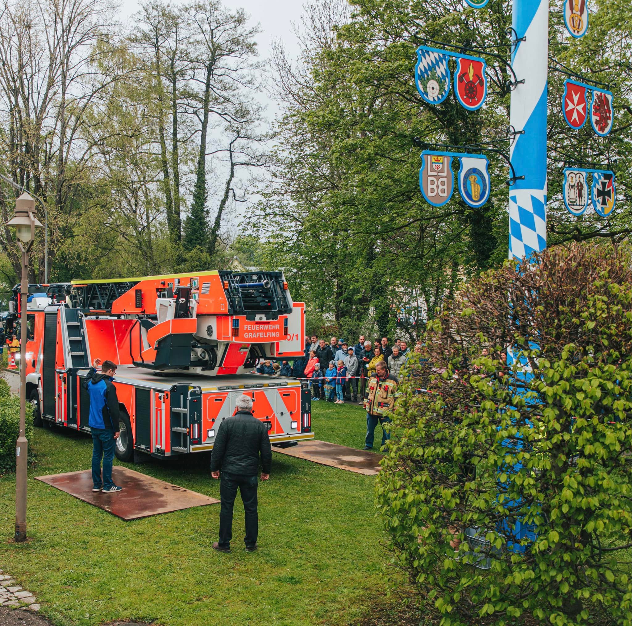 01.05.2022 Maifest: Nach 2 Jahren Zwangspause fand gestern das Gräfelfinger Maifest wieder auf unserem Feuerwehrhof statt. Dort unterstützten wir unter anderem mit unserer Drehleiter.