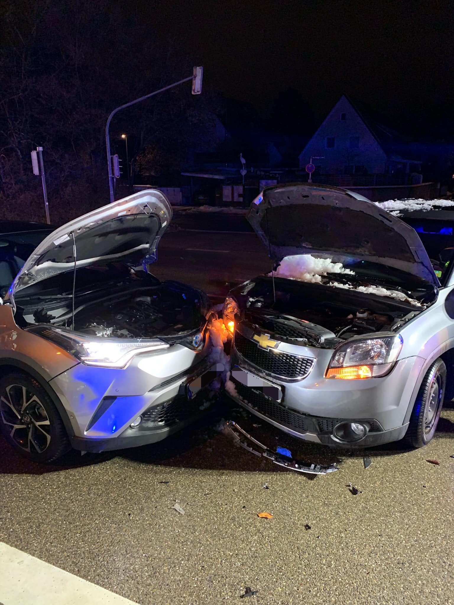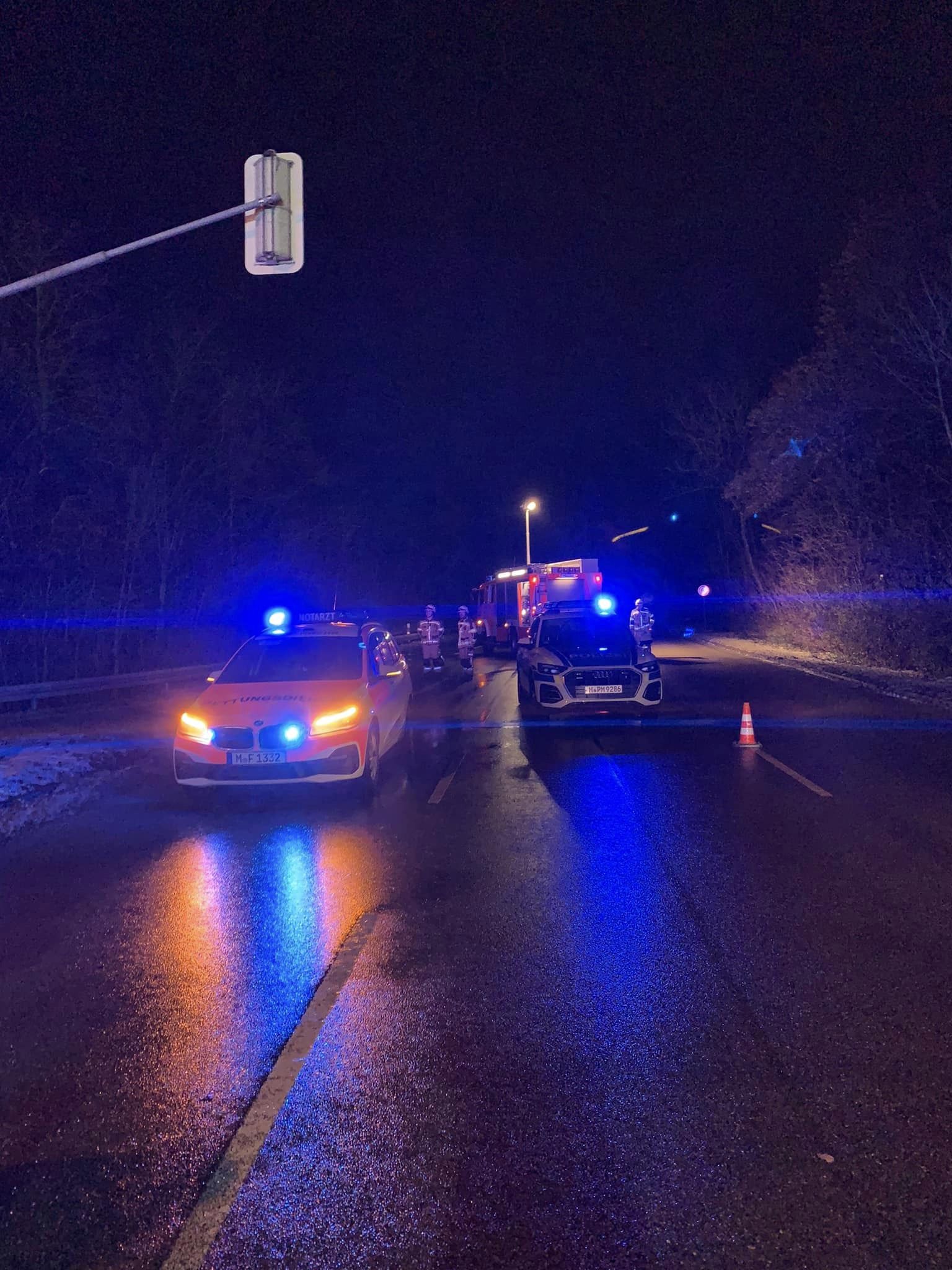 Gegen kurz nach 3:00 Uhr wurden wir gestern Nacht zu einem Unfall gerufen. An der Kreuzung zur Autobahn Auffahrt Richtung Lindau kam es zu einem Zusammenstoß zwischen zwei PKWs. Bei einem Unfallbeteiligten wurde aufgrund des Unfallmechanismus, automatisiert, durch die künstliche Intelligenz des Handys, ein Notruf mit Koordinaten an die Einsatzzentrale des Landkreis München übertragen. An der Einsatzstelle waren ebenfalls ein RTW und Notarzt, sowie die Polizei vor Ort und kümmerten sich um die beiden leicht verletzten Fahrer. Für uns galt es die Unfallstelle auszuleuchten und abzusichern, den Brandschutz sicher zu stellen und anschließend die Fahrbahn zu räumen.